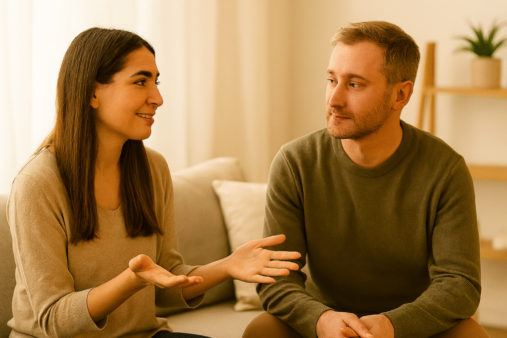 از شریک خود بخواهید درباره ترس از صمیمیت با شما صحبت کند، بدون قضاوت. اگر این کار دشوار است، حضور یک زوج درمانگر یا تراپیست خوب در اصفهان می‌تواند فضای امنی برای این گفت‌وگو فراهم کند.
